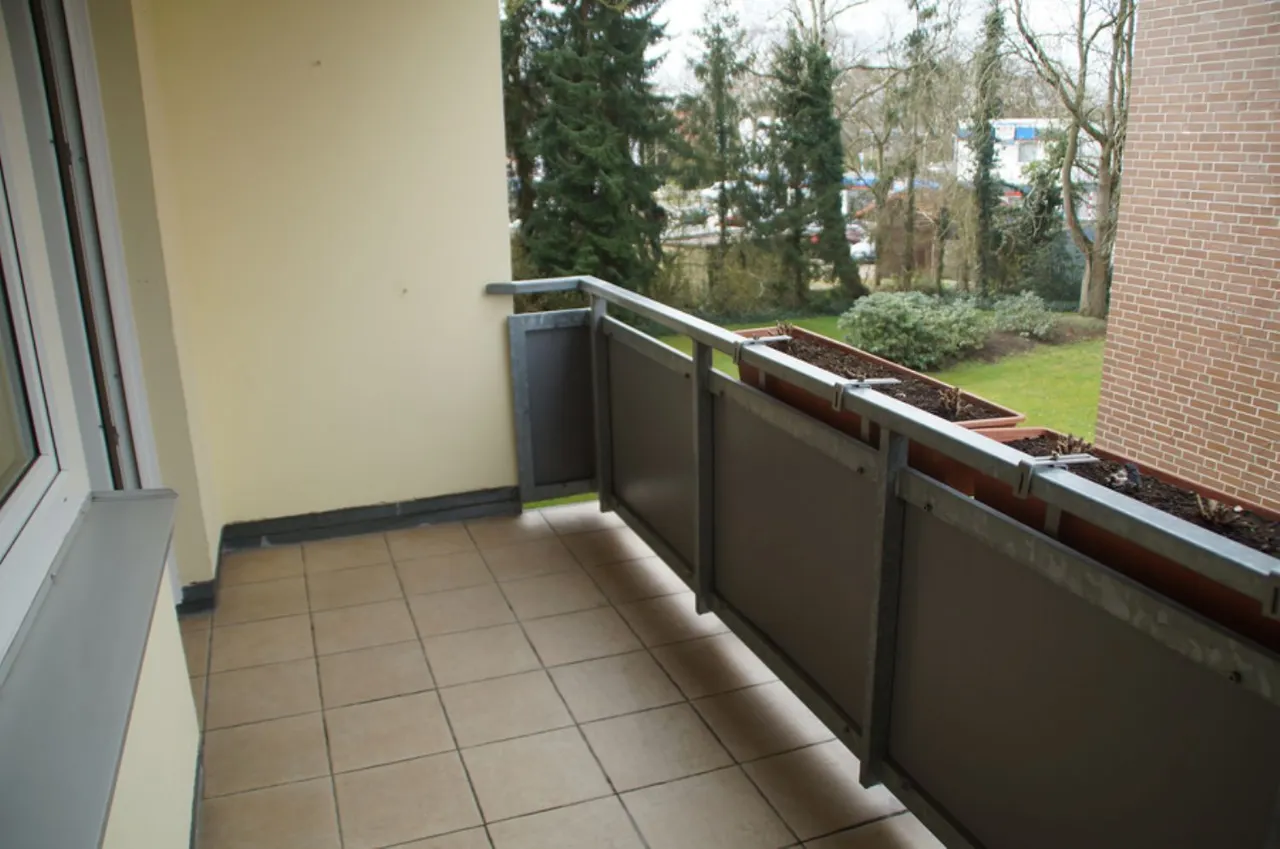 Der ruhig nach hinten gelegene Balkon lädt zum Entspannen ein und bietet einen angenehmen Rückzugsort vom Alltag.