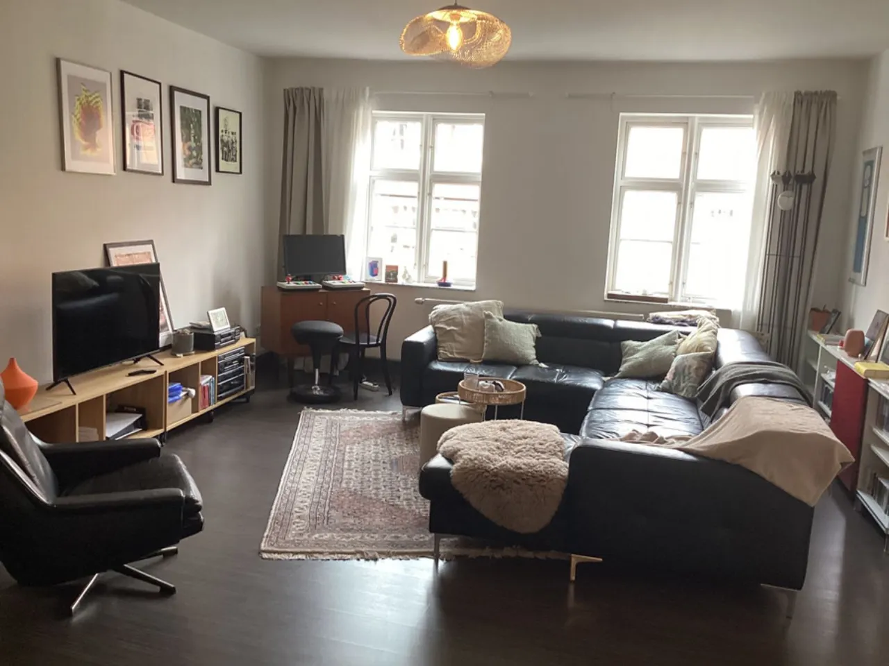 Im Wohnbereich ist dunkles Laminat verlegt worden.