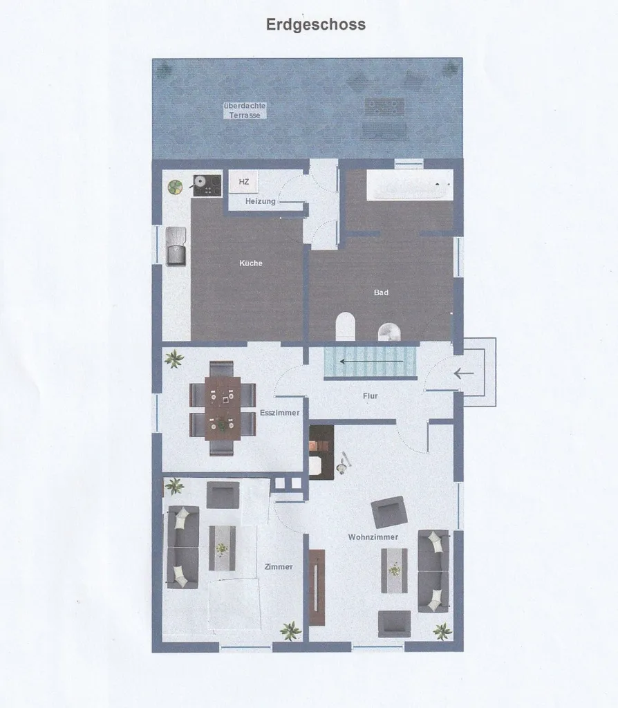 Die lichtdurchfluteten Räume schaffen eine einladende Atmosphäre, die Sie sofort in Ihr neues Zuhause eintauchen lässt. Beim Betreten des Hauses gelangen Sie über die Diele in das Erdgeschoss, wo ein gemütliches Wohnzimmer mit einem Kaminofen zum Entspannen einlädt. Ein zusätzliches Arbeitszimmer bietet Platz für Homeoffice oder kreative Hobbys. Das Esszimmer mit Durchgang zur gut ausgestatteten Einbauküche ist perfekt für gesellige Abende mit Familie und Freunden. Das großzügige Badezimmer mit Tageslichtfenster sorgt für eine angenehme Wohlfühlatmosphäre. Der Heizungsraum ist mit einer Buderus Gas-Zentralheizung und einem Brauchwassergerät ausgestattet. Vom Nebenausgang aus gelangen Sie auf die ca. 40 m² große überdachte Terrasse, die sich ideal für Grillabende und entspannte Stunden im Freien eignet. Der Garten bietet ausreichend Platz für individuelle Gestaltungsmöglichkeiten.