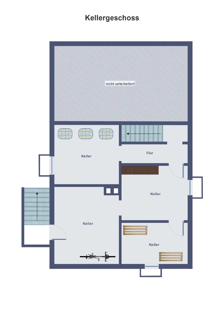 Das Haus ist teilunterkellert und bietet mit vier Kellerräumen viel Stauraum für Vorräte und Hobbys. Der direkte Zugang zum Gartenbereich über die Kellerausgangstür ist besonders praktisch.